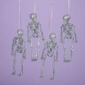 Kurt 6" Silver Glittered Skeleton Ornaments 4-piece HW1383 Description